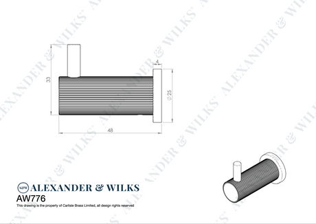 Alexander & Wilks Dark Bronze Brunel Reeded Line Coat Hook | AW776DBZPVD