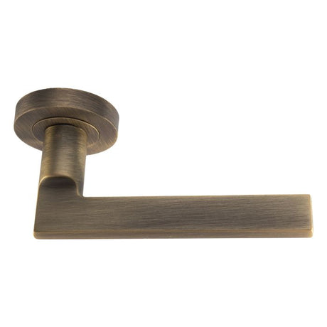 Set Antique Brass Sasso Lever Furniture on round rose | EUL010AB