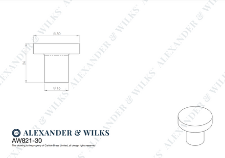 Alexander & Wilks Satin Nickel 30mm Hanover Plain Cupboard Knob