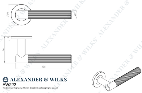 Alexander & Wilks Satin Brass PVD Spitfire Knurled Lever on rose | AW220SBPVD
