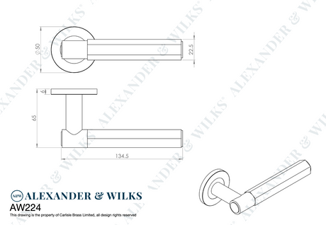 Alexander & Wilks Satin Brass PVD Spitfire Lever Diamond Cut on rose | AW226SBPVD