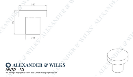 Alexander and Wilks Dark Bronze 30mm Hanover Plain Cupboard Knob