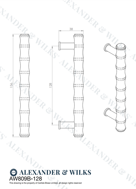 A&W Antique Brass Bamboo T Bar Pull Handle c/c 128mm AW809B-128-AB