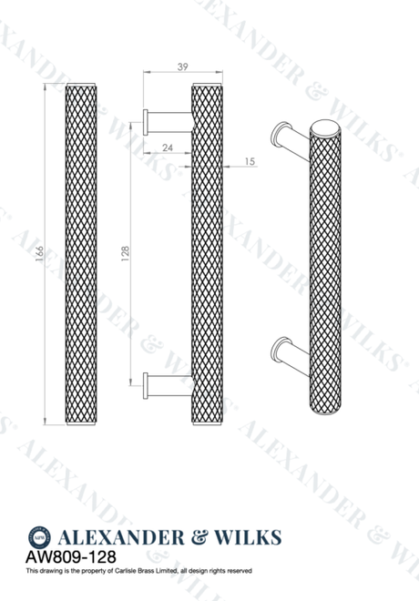 A&W Crispin Dark Bronze PVD Knurled T Bar Pull Handle c/c 160mm
