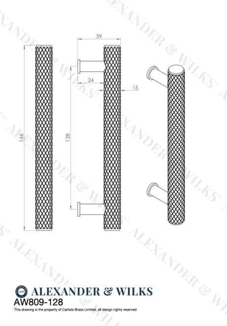 A&W Crispin Polished Chrome Knurled T Bar Pull Handle c/c 160mm