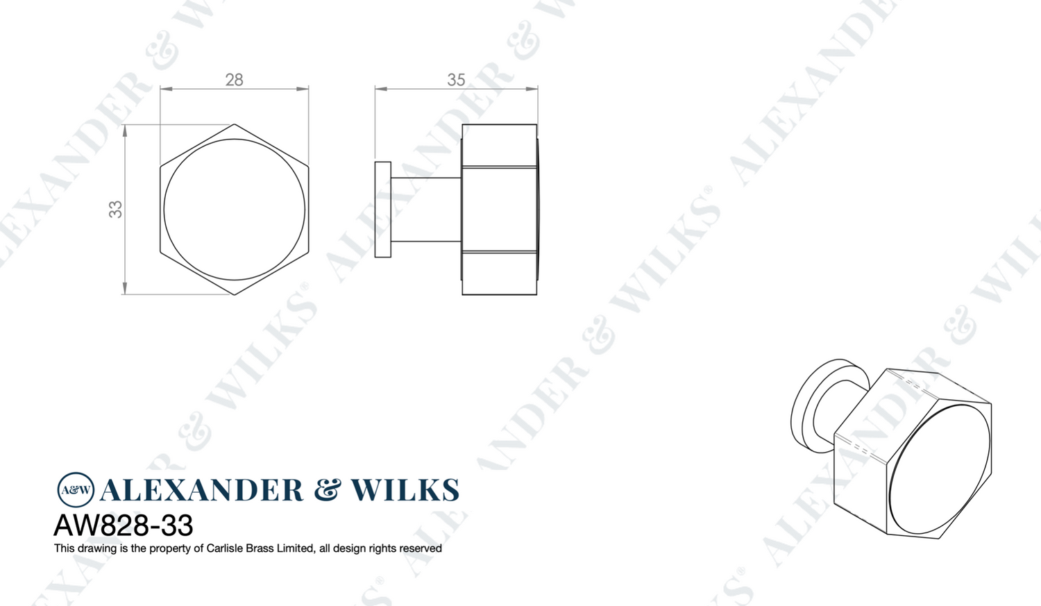 Alexander and Wilks Black Vesper Hexagon Cabinet Knob | AW828-33-BL