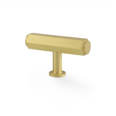 Satin Brass T Bar Vesper Hexagonal Cabinet Knob | AW829-55-SB