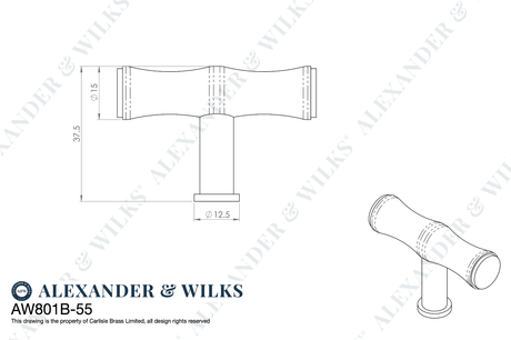 Alexander and Wilks Dark Bronze PVD Bamboo T Bar Cupboard Knob