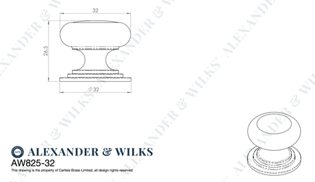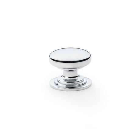 Alexander and Wilks Polished Chrome 32mm Round Cupboard Knob on Stepped Rose | AW825-32-PC