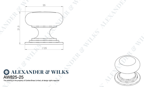 Alexander and Wilks Polished Brass Lacquer 25mm Round Cupboard Knob on Stepped Rose | AW825-25-PBL