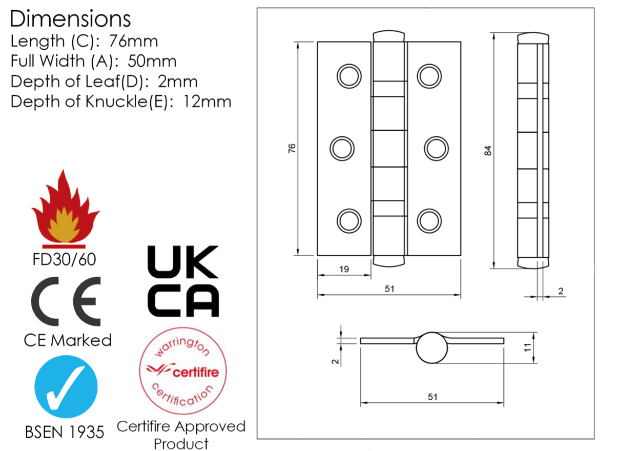 - Fire Rated FD30/60 when used with intumescent (sold seperately)