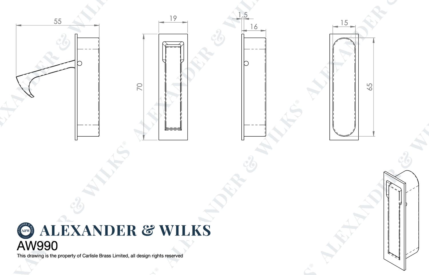 A&W Black Square Sliding Door Edge Flush Pull | AW990BL is backordered and will ship as soon as it is back in stock.