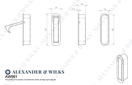 A&W Antique Brass Radius Sliding Door Edge Flush Pull | AW991AB
