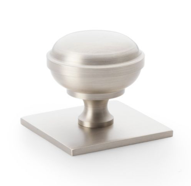 Alexander and Wilks 38mm Quantock Satin Nickel Cupboard Knob on Square Backplate