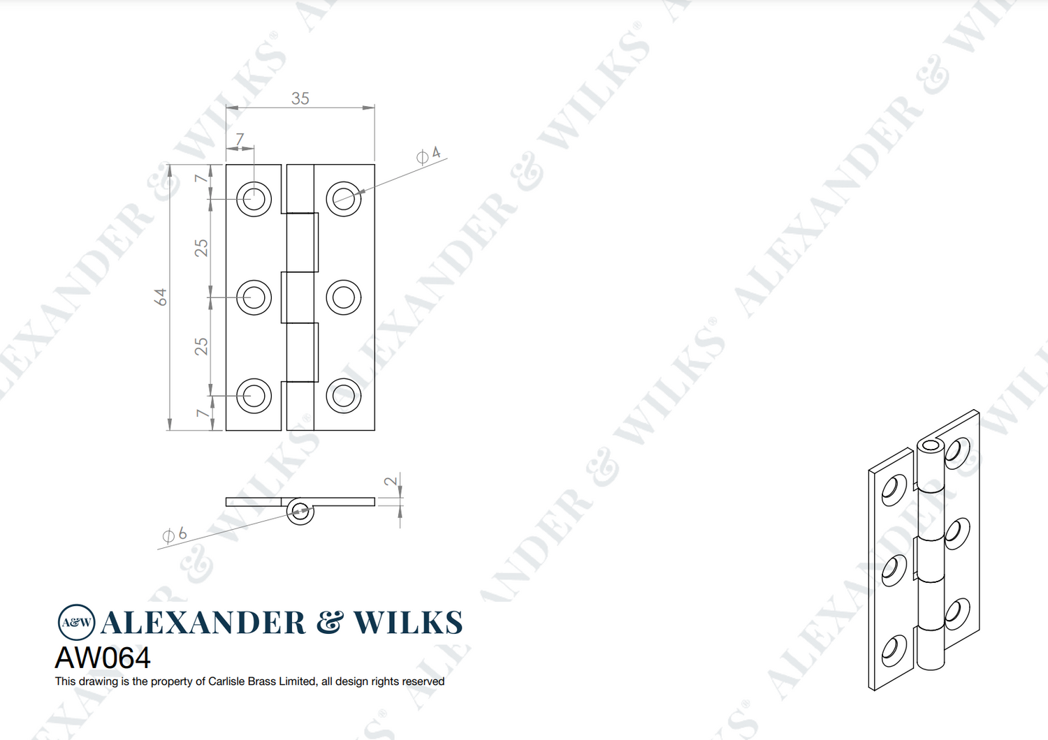 Pair Dark Bronze 64mm Cabinet Butt Hinge | AW064-CH-DBZ