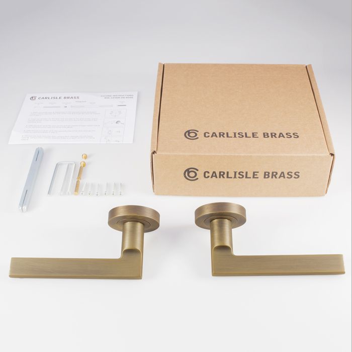 Set Antique Brass Trentino Lever Furniture on round rose | EUL030AB